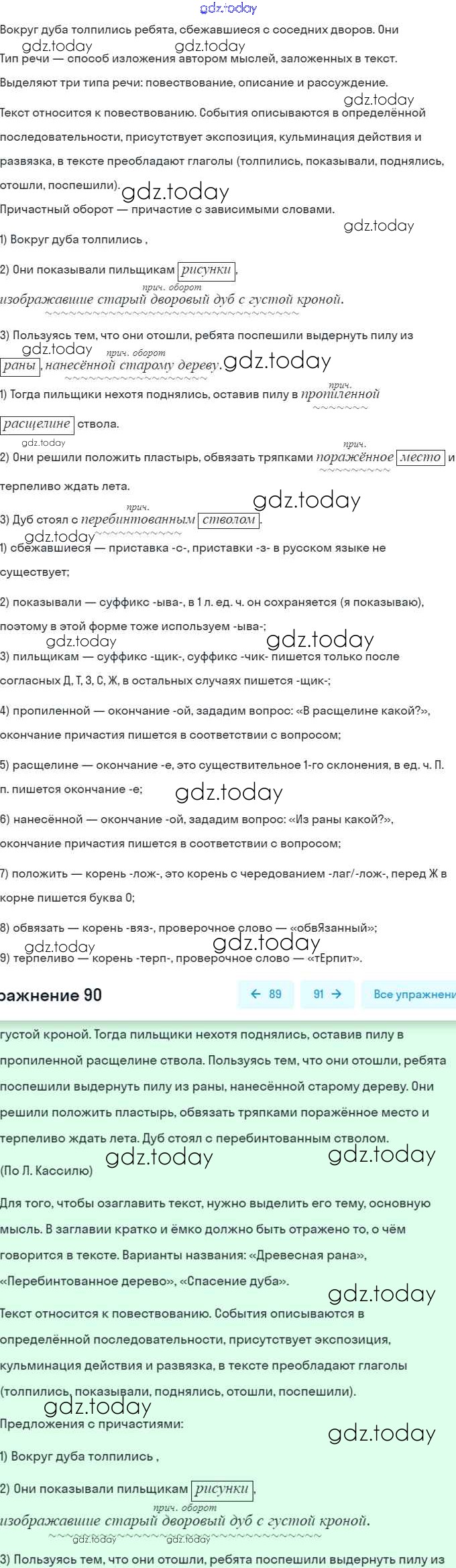 На страницах сайта gdz.today вы найдете учебный и вспомогательный материал, направленный на улучшения знаний школьной программы. ГДЗ - онлайн мир знаний Решение. Упражнения 90 Учебнику по Русскому языку для 7 класса Баранов, Ладыженская Просвещение, Просвещение 2015, 2022
