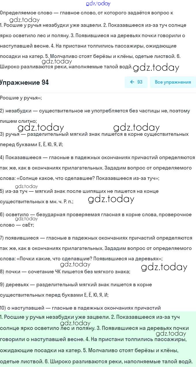 На страницах сайта gdz.today вы найдете учебный и вспомогательный материал, направленный на улучшения знаний школьной программы. ГДЗ - онлайн мир знаний Решение. Упражнения 94 Учебнику по Русскому языку для 7 класса Баранов, Ладыженская Просвещение, Просвещение 2015, 2022