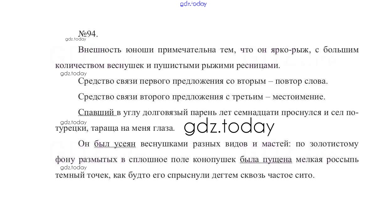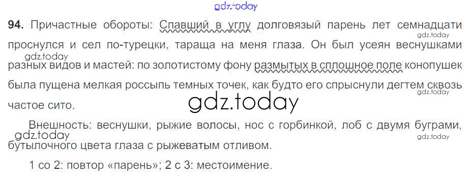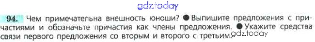 На страницах сайта gdz.today вы найдете учебный и вспомогательный материал, направленный на улучшения знаний школьной программы. ГДЗ - онлайн мир знаний Решение к упражнениям 94 Учебнику по Русскому языку для 7 класса Баранов, Ладыженская Просвещение УМК 2015