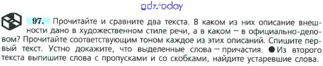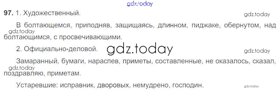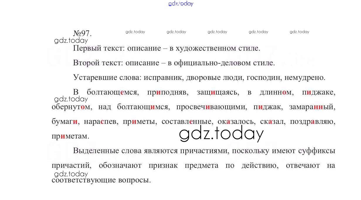 На страницах сайта gdz.today вы найдете учебный и вспомогательный материал, направленный на улучшения знаний школьной программы. ГДЗ - онлайн мир знаний Решение к упражнениям 97 Учебнику по Русскому языку для 7 класса Баранов, Ладыженская Просвещение УМК 2015