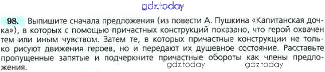 На страницах сайта gdz.today вы найдете учебный и вспомогательный материал, направленный на улучшения знаний школьной программы. ГДЗ - онлайн мир знаний Решение к упражнениям 98 Учебнику по Русскому языку для 7 класса Баранов, Ладыженская Просвещение УМК 2015
