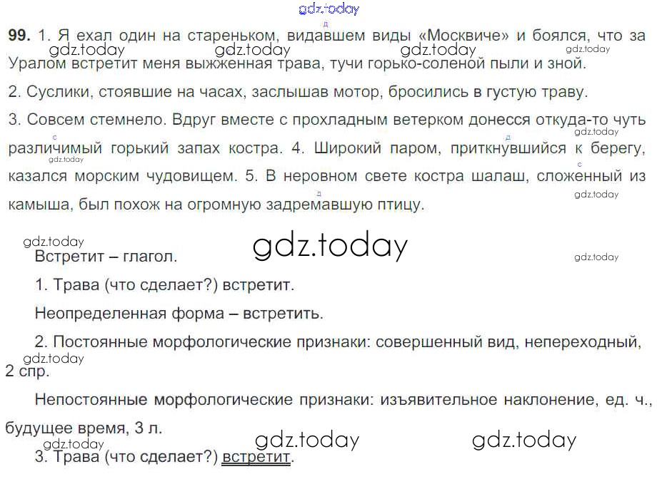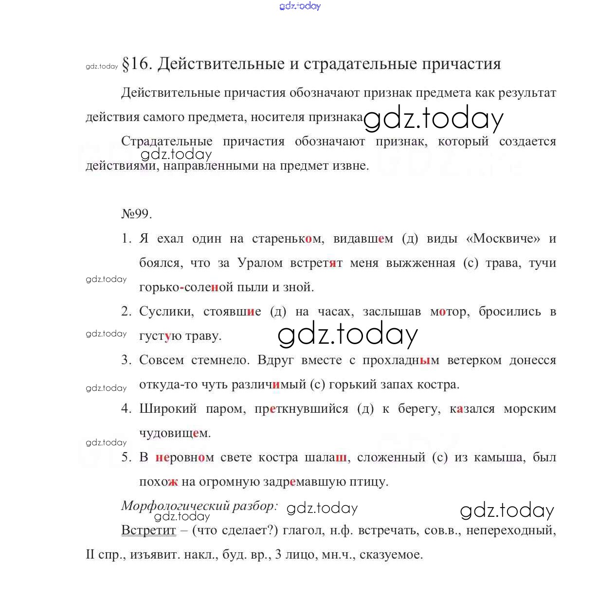 На страницах сайта gdz.today вы найдете учебный и вспомогательный материал, направленный на улучшения знаний школьной программы. ГДЗ - онлайн мир знаний Решение к упражнениям 99 Учебнику по Русскому языку для 7 класса Баранов, Ладыженская Просвещение УМК 2015