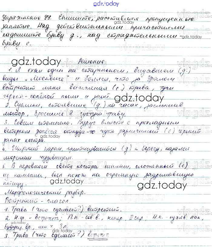 На страницах сайта gdz.today вы найдете учебный и вспомогательный материал, направленный на улучшения знаний школьной программы. ГДЗ - онлайн мир знаний Решение. Упражнения 99 Учебнику по Русскому языку для 7 класса Баранов, Ладыженская Просвещение, Просвещение 2015, 2022