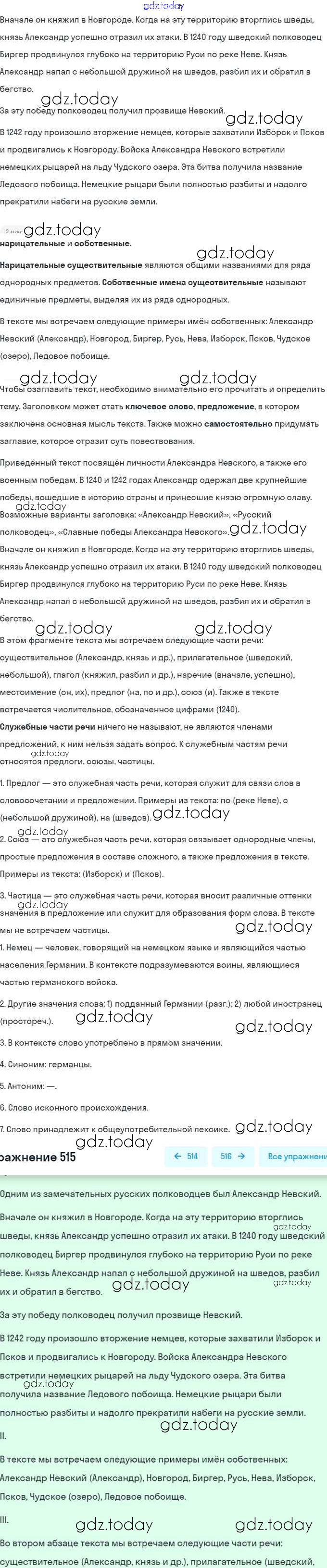 На страницах сайта gdz.today вы найдете учебный и вспомогательный материал, направленный на улучшения знаний школьной программы. ГДЗ - онлайн мир знаний Решение. Упражнения 515 Учебнику по Русскому языку для 7 класса Баранов, Ладыженская Просвещение, Просвещение 2015, 2022