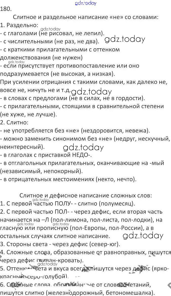 На страницах сайта gdz.today вы найдете учебный и вспомогательный материал, направленный на улучшения знаний школьной программы. ГДЗ - онлайн мир знаний Решение к упражнениям 180 Учебнику по Русскому языку для 7 класса Львова, Львов Мнемозина УМК 2012