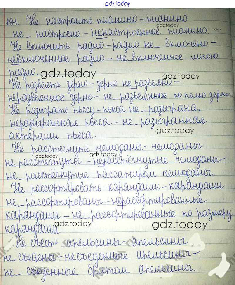 На страницах сайта gdz.today вы найдете учебный и вспомогательный материал, направленный на улучшения знаний школьной программы. ГДЗ - онлайн мир знаний Решение к упражнениям 191 Учебнику по Русскому языку для 7 класса Львова, Львов Мнемозина УМК 2012