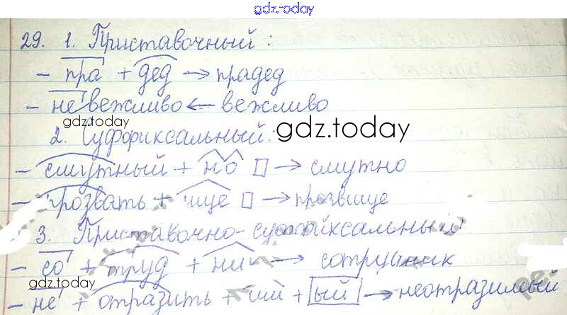 На страницах сайта gdz.today вы найдете учебный и вспомогательный материал, направленный на улучшения знаний школьной программы. ГДЗ - онлайн мир знаний Решение к упражнениям 29 Учебнику по Русскому языку для 7 класса Львова, Львов Мнемозина УМК 2012