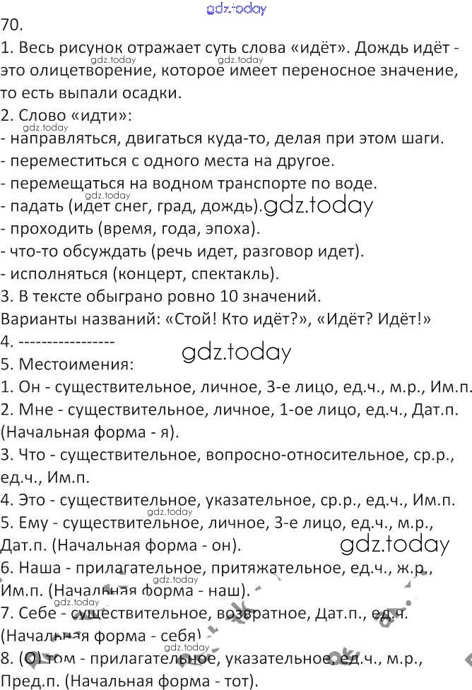 На страницах сайта gdz.today вы найдете учебный и вспомогательный материал, направленный на улучшения знаний школьной программы. ГДЗ - онлайн мир знаний Решение к упражнениям 70 Учебнику по Русскому языку для 7 класса Львова, Львов Мнемозина УМК 2012