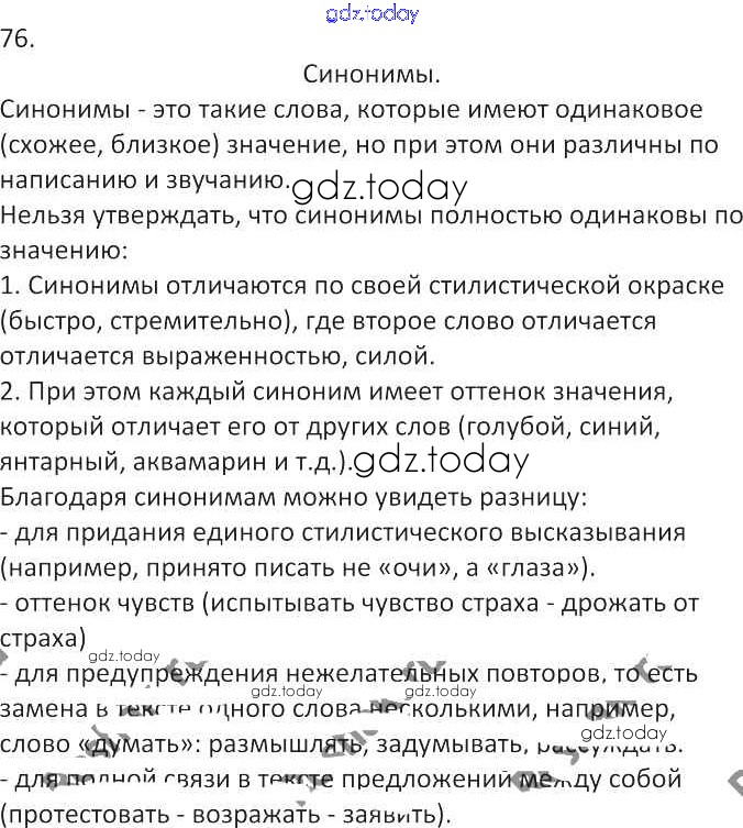 На страницах сайта gdz.today вы найдете учебный и вспомогательный материал, направленный на улучшения знаний школьной программы. ГДЗ - онлайн мир знаний Решение к упражнениям 76 Учебнику по Русскому языку для 7 класса Львова, Львов Мнемозина УМК 2012