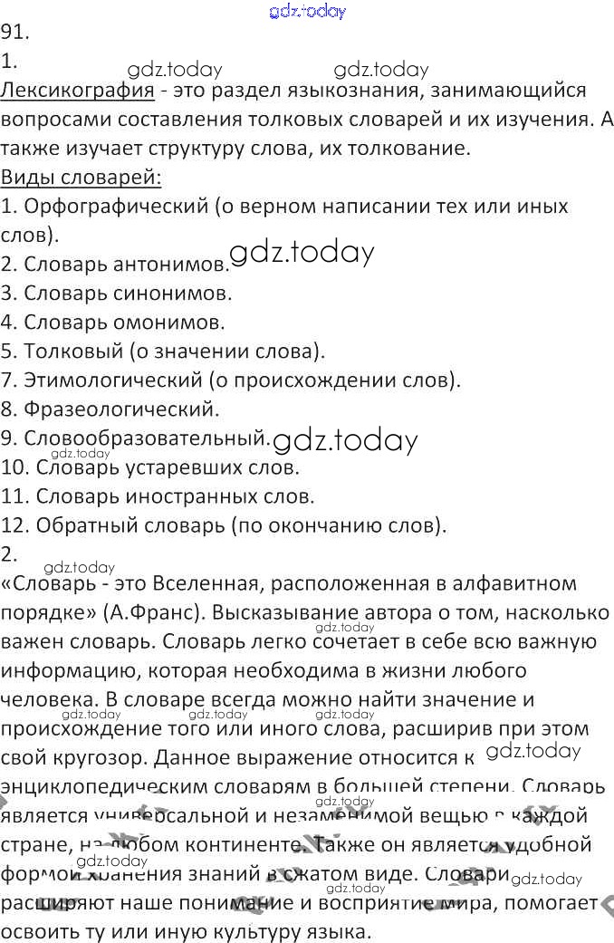 На страницах сайта gdz.today вы найдете учебный и вспомогательный материал, направленный на улучшения знаний школьной программы. ГДЗ - онлайн мир знаний Решение к упражнениям 91 Учебнику по Русскому языку для 7 класса Львова, Львов Мнемозина УМК 2012