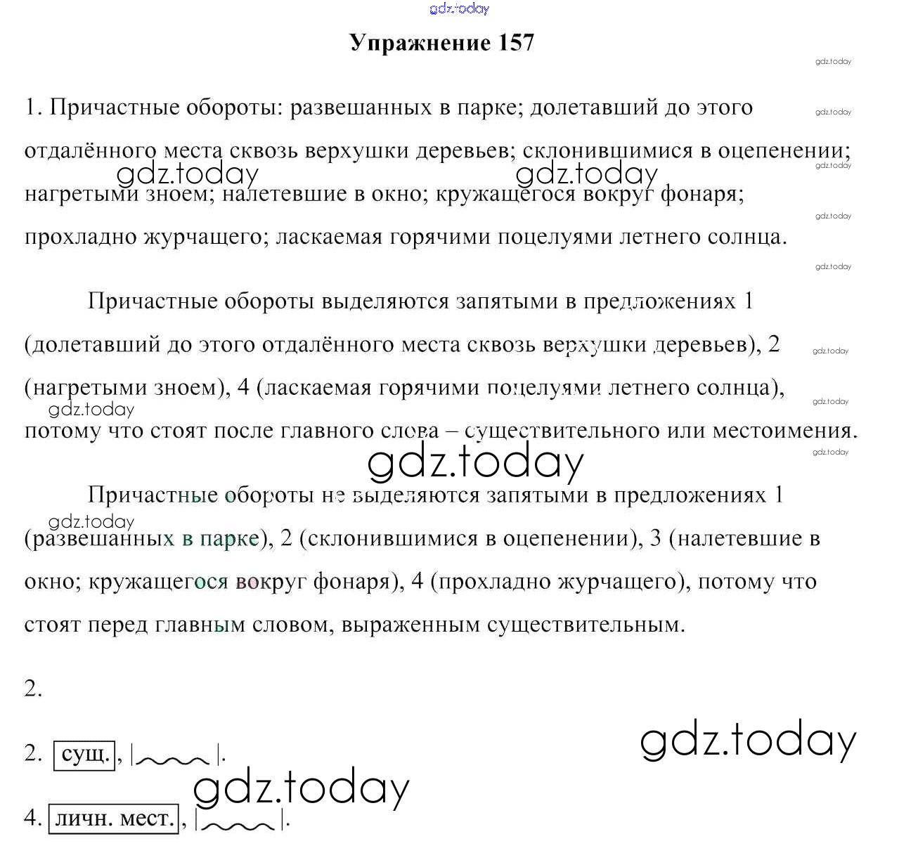 На страницах сайта gdz.today вы найдете учебный и вспомогательный материал, направленный на улучшения знаний школьной программы. ГДЗ - онлайн мир знаний Решение к упражнениям 157 Учебнику по Русскому языку для 7 класса Мурина, Волынец Национальный институт образования 2015