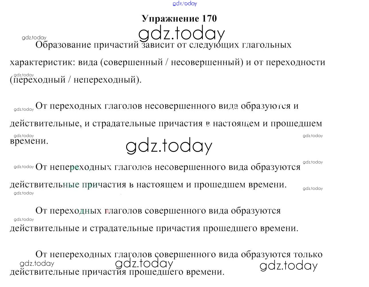 На страницах сайта gdz.today вы найдете учебный и вспомогательный материал, направленный на улучшения знаний школьной программы. ГДЗ - онлайн мир знаний Решение к упражнениям 170 Учебнику по Русскому языку для 7 класса Мурина, Волынец Национальный институт образования 2015