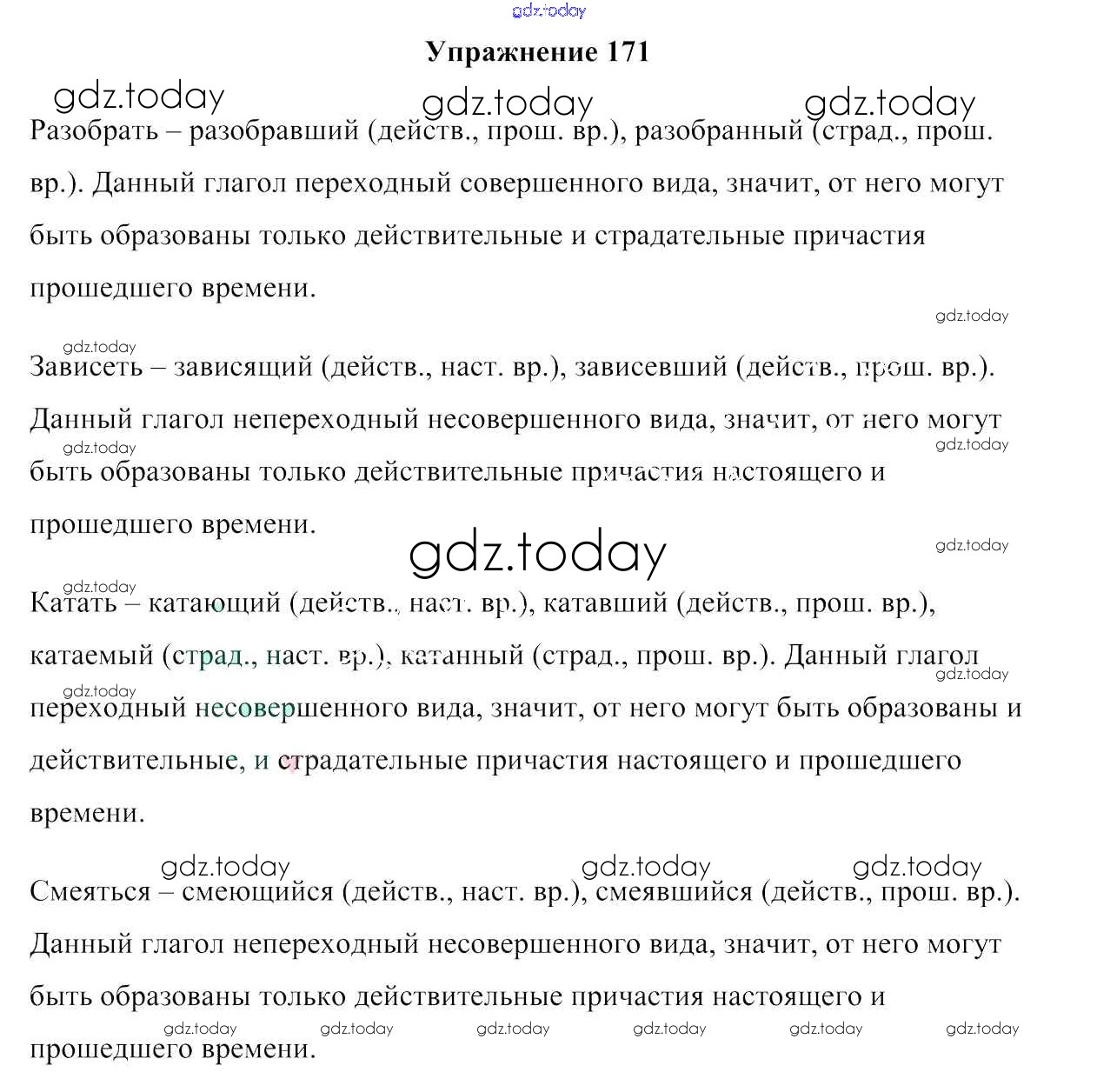 На страницах сайта gdz.today вы найдете учебный и вспомогательный материал, направленный на улучшения знаний школьной программы. ГДЗ - онлайн мир знаний Решение к упражнениям 171 Учебнику по Русскому языку для 7 класса Мурина, Волынец Национальный институт образования 2015