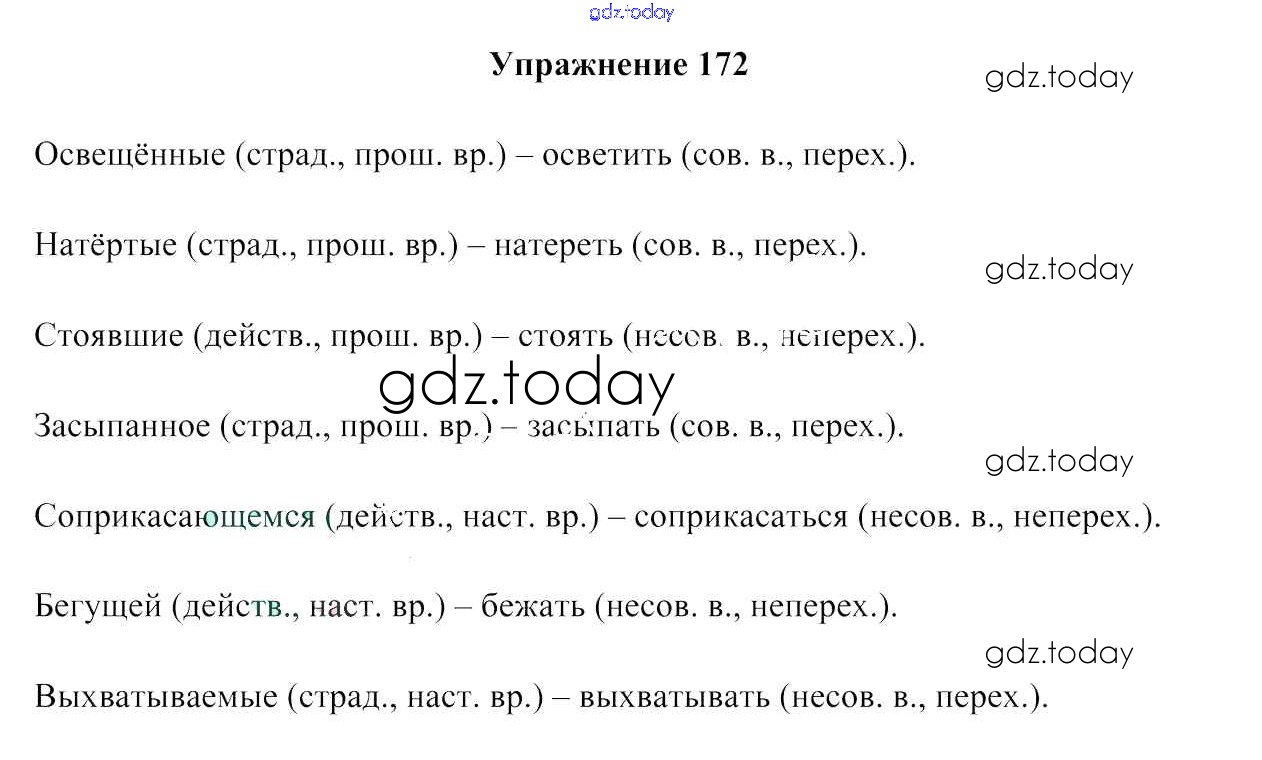 На страницах сайта gdz.today вы найдете учебный и вспомогательный материал, направленный на улучшения знаний школьной программы. ГДЗ - онлайн мир знаний Решение к упражнениям 172 Учебнику по Русскому языку для 7 класса Мурина, Волынец Национальный институт образования 2015