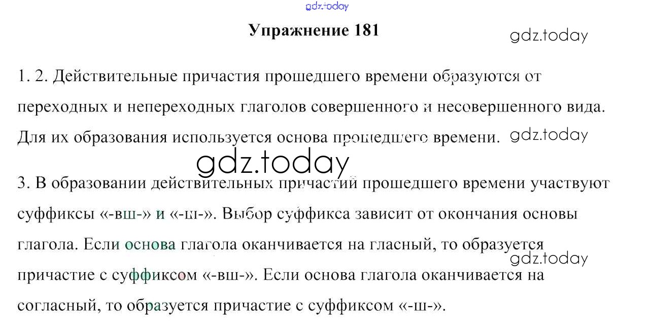 На страницах сайта gdz.today вы найдете учебный и вспомогательный материал, направленный на улучшения знаний школьной программы. ГДЗ - онлайн мир знаний Решение к упражнениям 181 Учебнику по Русскому языку для 7 класса Мурина, Волынец Национальный институт образования 2015