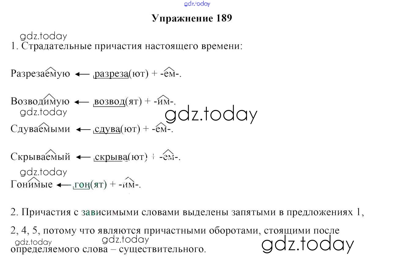 На страницах сайта gdz.today вы найдете учебный и вспомогательный материал, направленный на улучшения знаний школьной программы. ГДЗ - онлайн мир знаний Решение к упражнениям 189 Учебнику по Русскому языку для 7 класса Мурина, Волынец Национальный институт образования 2015