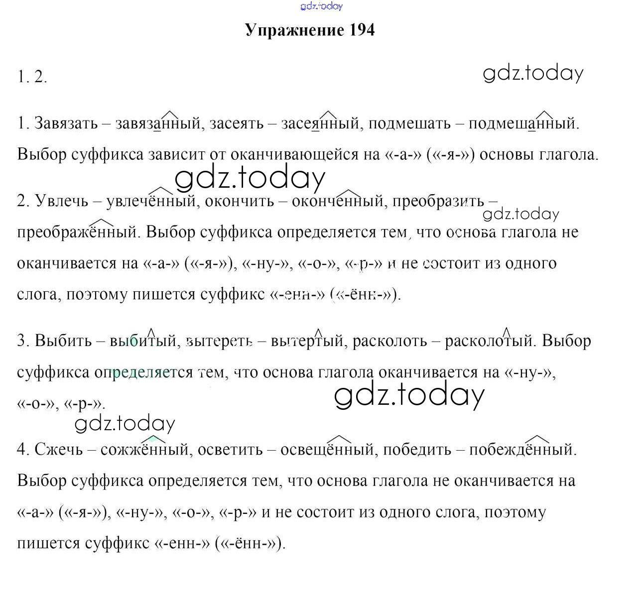 На страницах сайта gdz.today вы найдете учебный и вспомогательный материал, направленный на улучшения знаний школьной программы. ГДЗ - онлайн мир знаний Решение к упражнениям 194 Учебнику по Русскому языку для 7 класса Мурина, Волынец Национальный институт образования 2015