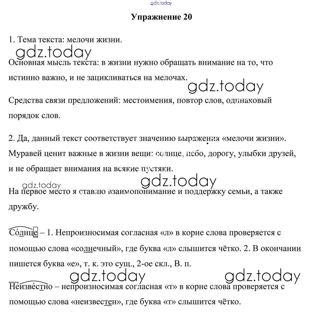 На страницах сайта gdz.today вы найдете учебный и вспомогательный материал, направленный на улучшения знаний школьной программы. ГДЗ - онлайн мир знаний Решение к упражнениям 20 Учебнику по Русскому языку для 7 класса Мурина, Волынец Национальный институт образования 2015