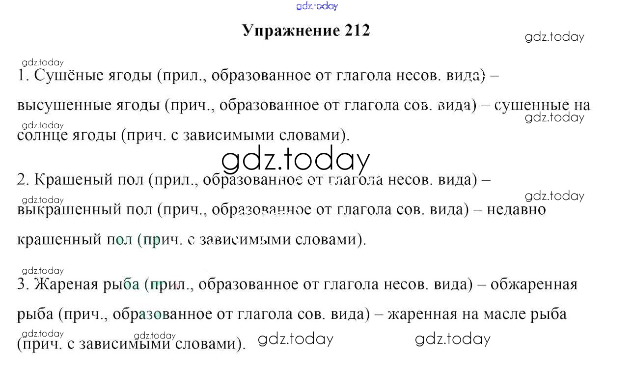 На страницах сайта gdz.today вы найдете учебный и вспомогательный материал, направленный на улучшения знаний школьной программы. ГДЗ - онлайн мир знаний Решение к упражнениям 212 Учебнику по Русскому языку для 7 класса Мурина, Волынец Национальный институт образования 2015