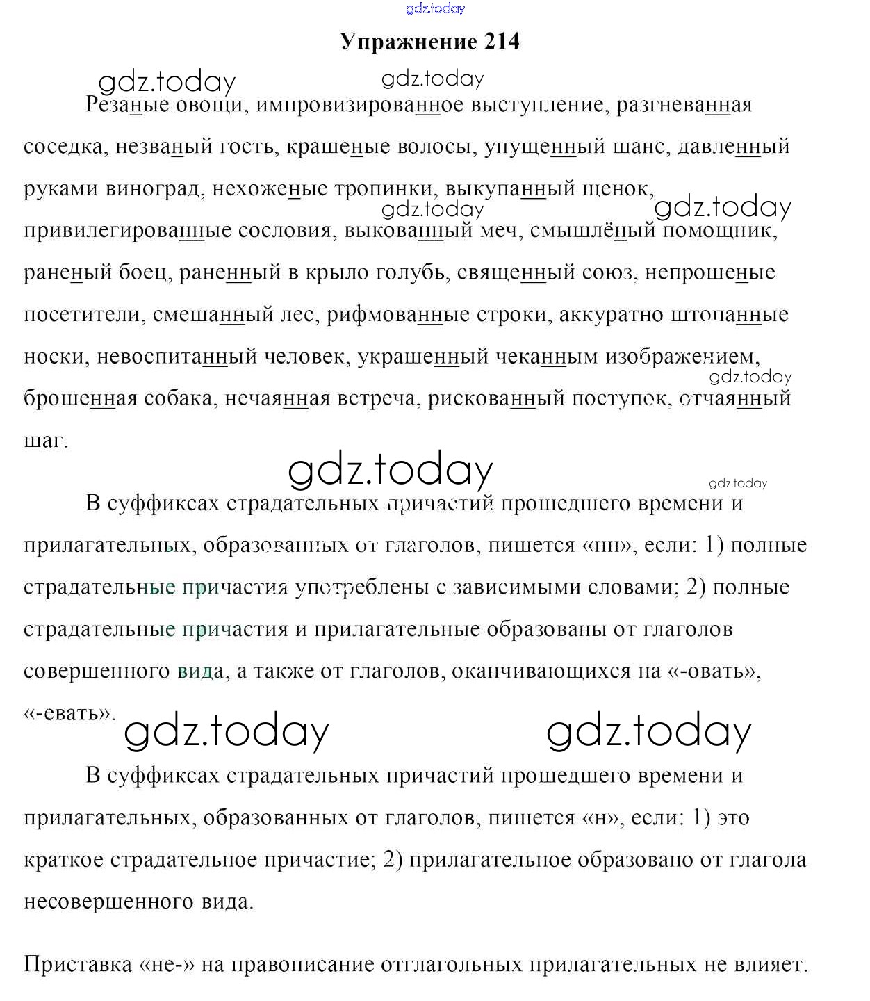 На страницах сайта gdz.today вы найдете учебный и вспомогательный материал, направленный на улучшения знаний школьной программы. ГДЗ - онлайн мир знаний Решение к упражнениям 214 Учебнику по Русскому языку для 7 класса Мурина, Волынец Национальный институт образования 2015