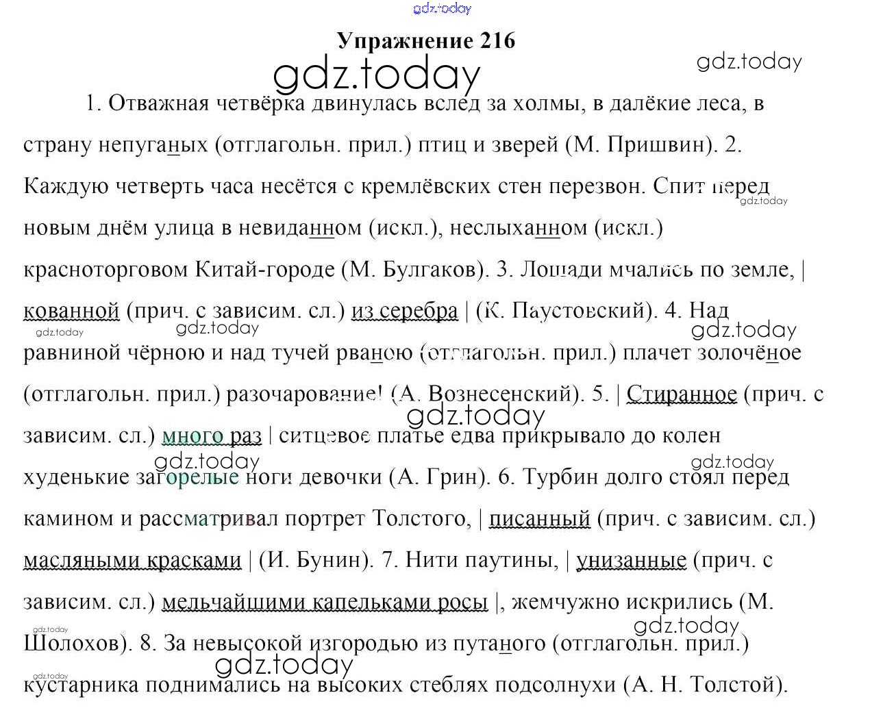 На страницах сайта gdz.today вы найдете учебный и вспомогательный материал, направленный на улучшения знаний школьной программы. ГДЗ - онлайн мир знаний Решение к упражнениям 216 Учебнику по Русскому языку для 7 класса Мурина, Волынец Национальный институт образования 2015