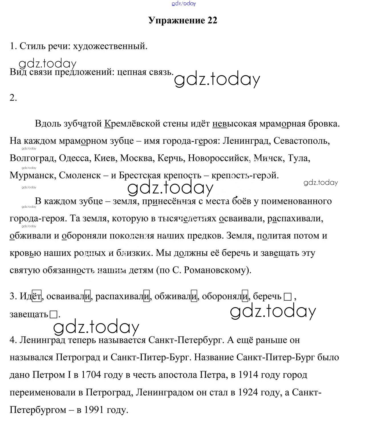 На страницах сайта gdz.today вы найдете учебный и вспомогательный материал, направленный на улучшения знаний школьной программы. ГДЗ - онлайн мир знаний Решение к упражнениям 22 Учебнику по Русскому языку для 7 класса Мурина, Волынец Национальный институт образования 2015