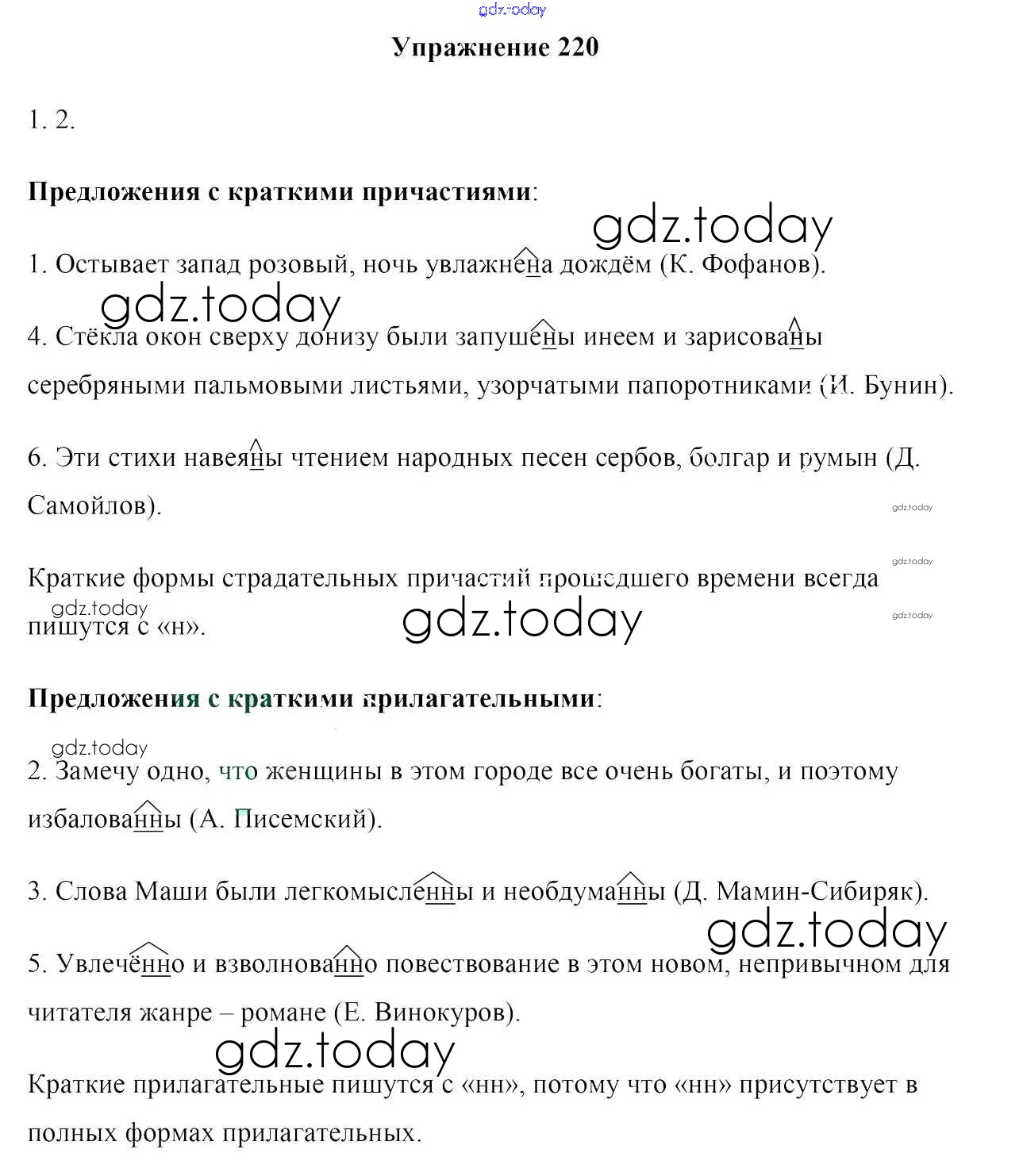 На страницах сайта gdz.today вы найдете учебный и вспомогательный материал, направленный на улучшения знаний школьной программы. ГДЗ - онлайн мир знаний Решение к упражнениям 220 Учебнику по Русскому языку для 7 класса Мурина, Волынец Национальный институт образования 2015