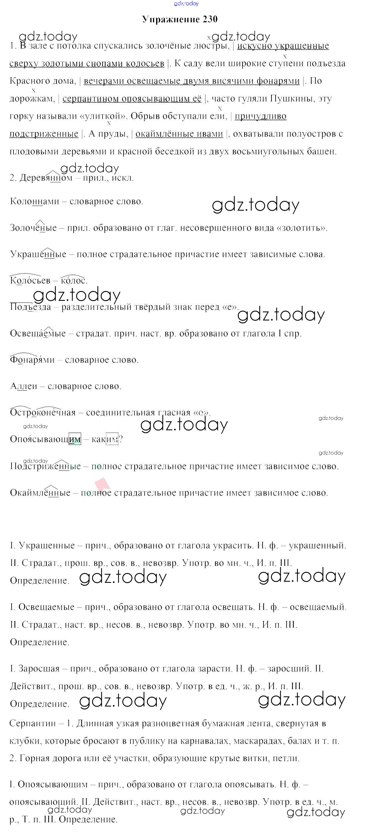На страницах сайта gdz.today вы найдете учебный и вспомогательный материал, направленный на улучшения знаний школьной программы. ГДЗ - онлайн мир знаний Решение к упражнениям 230 Учебнику по Русскому языку для 7 класса Мурина, Волынец Национальный институт образования 2015