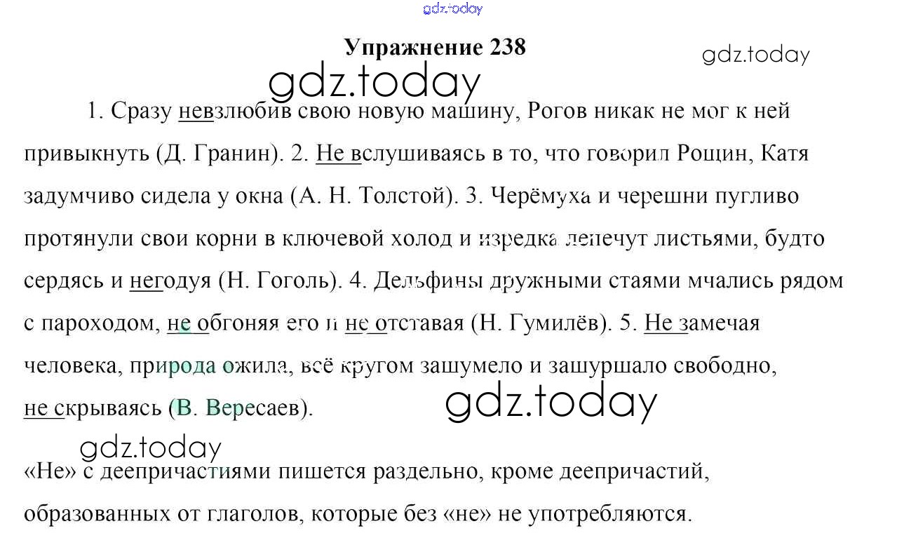 На страницах сайта gdz.today вы найдете учебный и вспомогательный материал, направленный на улучшения знаний школьной программы. ГДЗ - онлайн мир знаний Решение к упражнениям 238 Учебнику по Русскому языку для 7 класса Мурина, Волынец Национальный институт образования 2015