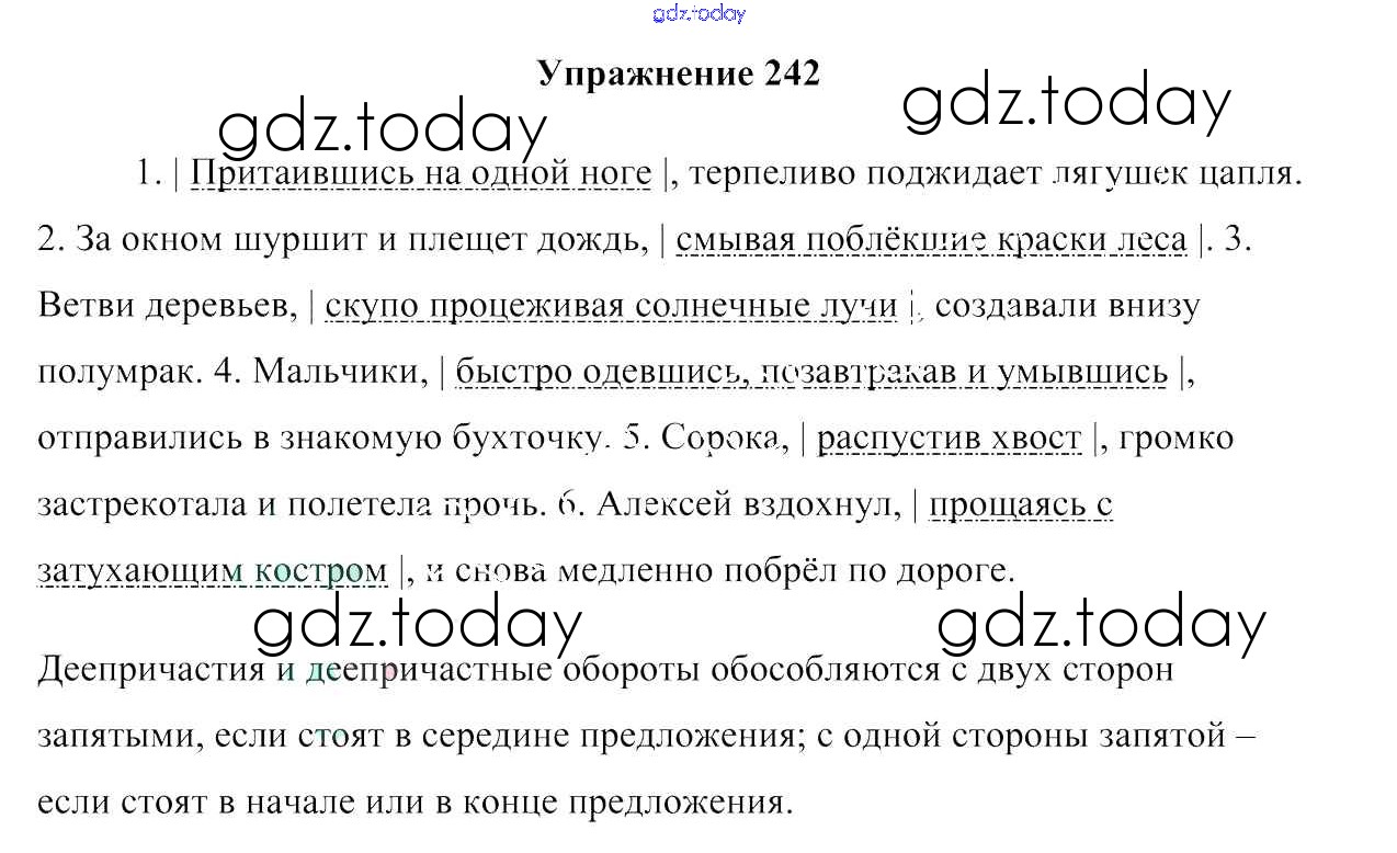На страницах сайта gdz.today вы найдете учебный и вспомогательный материал, направленный на улучшения знаний школьной программы. ГДЗ - онлайн мир знаний Решение к упражнениям 242 Учебнику по Русскому языку для 7 класса Мурина, Волынец Национальный институт образования 2015
