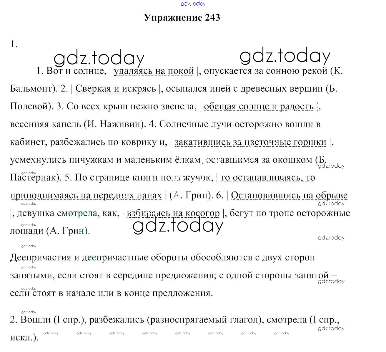 На страницах сайта gdz.today вы найдете учебный и вспомогательный материал, направленный на улучшения знаний школьной программы. ГДЗ - онлайн мир знаний Решение к упражнениям 243 Учебнику по Русскому языку для 7 класса Мурина, Волынец Национальный институт образования 2015