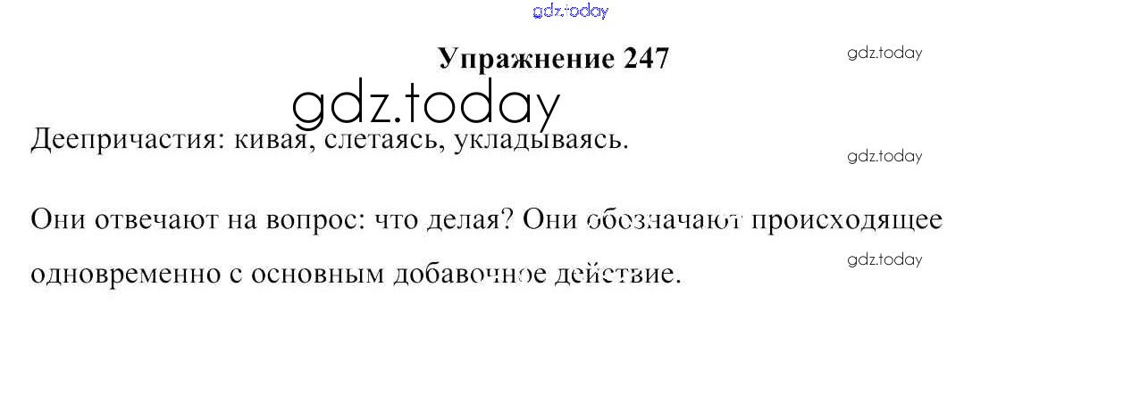 На страницах сайта gdz.today вы найдете учебный и вспомогательный материал, направленный на улучшения знаний школьной программы. ГДЗ - онлайн мир знаний Решение к упражнениям 247 Учебнику по Русскому языку для 7 класса Мурина, Волынец Национальный институт образования 2015