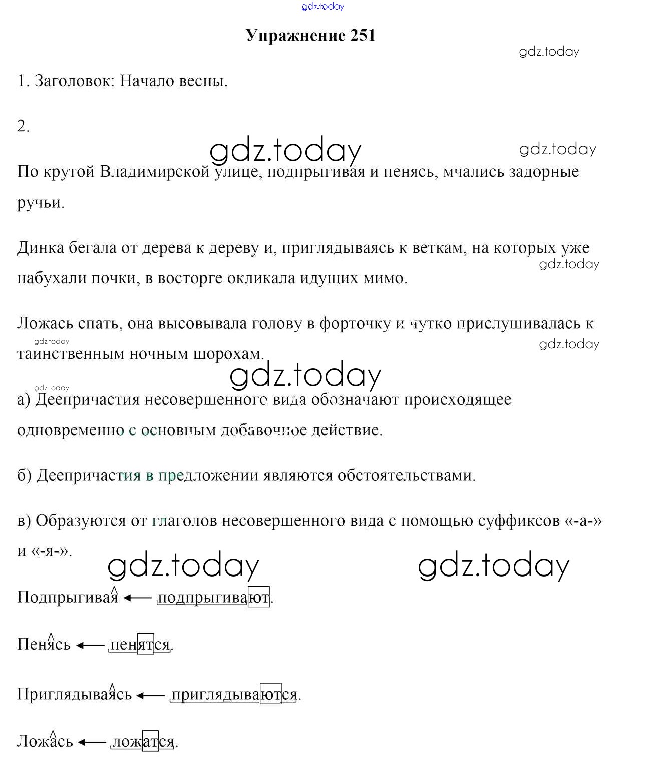 На страницах сайта gdz.today вы найдете учебный и вспомогательный материал, направленный на улучшения знаний школьной программы. ГДЗ - онлайн мир знаний Решение к упражнениям 251 Учебнику по Русскому языку для 7 класса Мурина, Волынец Национальный институт образования 2015