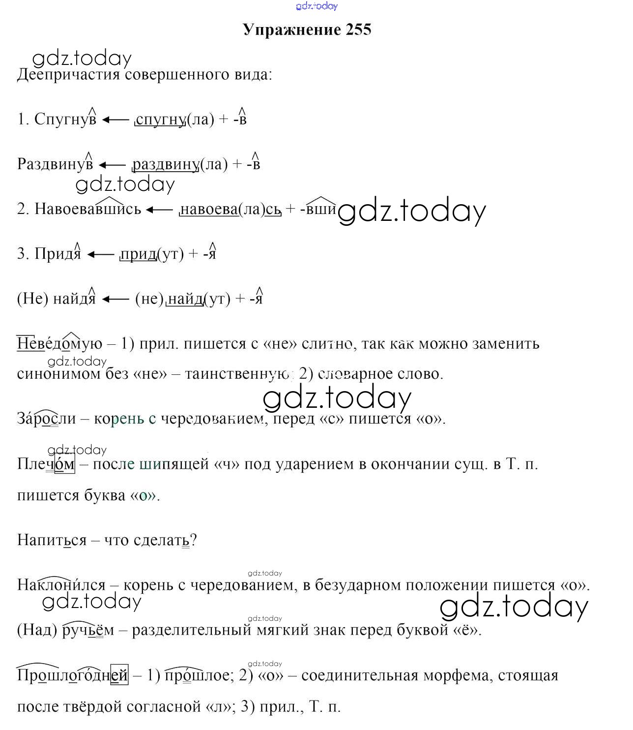 На страницах сайта gdz.today вы найдете учебный и вспомогательный материал, направленный на улучшения знаний школьной программы. ГДЗ - онлайн мир знаний Решение к упражнениям 255 Учебнику по Русскому языку для 7 класса Мурина, Волынец Национальный институт образования 2015