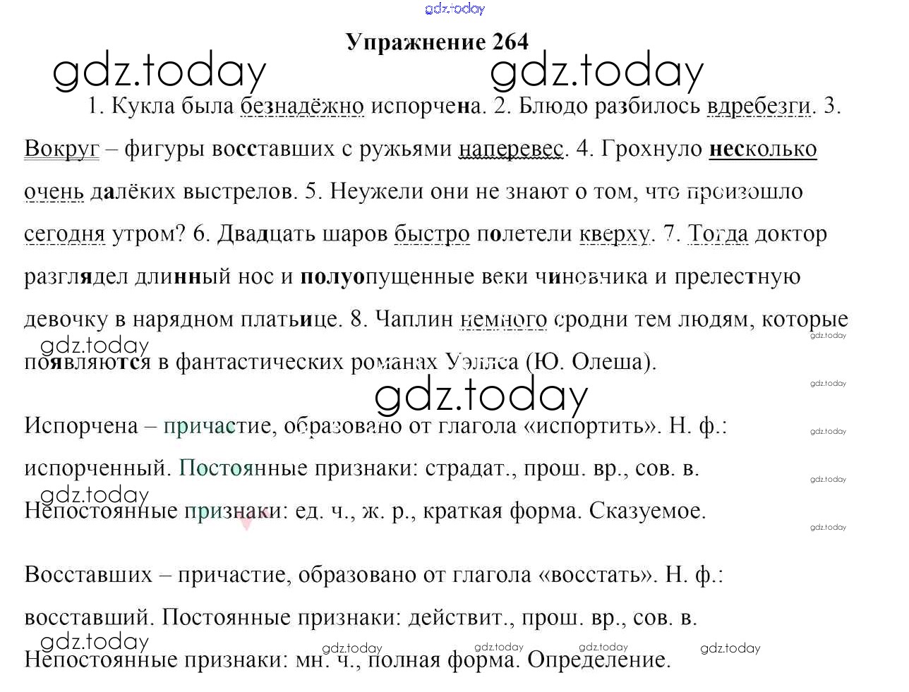 На страницах сайта gdz.today вы найдете учебный и вспомогательный материал, направленный на улучшения знаний школьной программы. ГДЗ - онлайн мир знаний Решение к упражнениям 264 Учебнику по Русскому языку для 7 класса Мурина, Волынец Национальный институт образования 2015