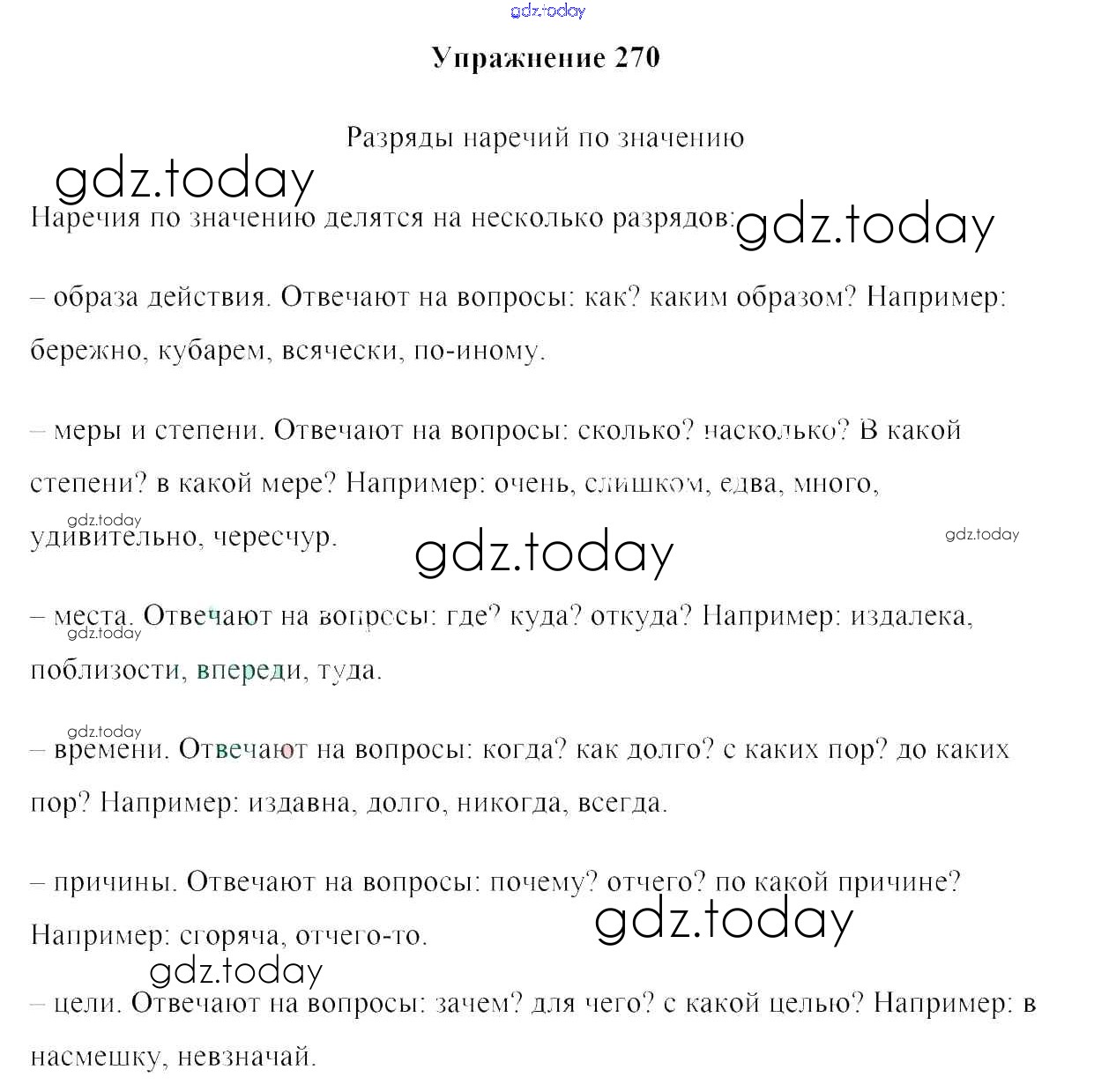 На страницах сайта gdz.today вы найдете учебный и вспомогательный материал, направленный на улучшения знаний школьной программы. ГДЗ - онлайн мир знаний Решение к упражнениям 270 Учебнику по Русскому языку для 7 класса Мурина, Волынец Национальный институт образования 2015