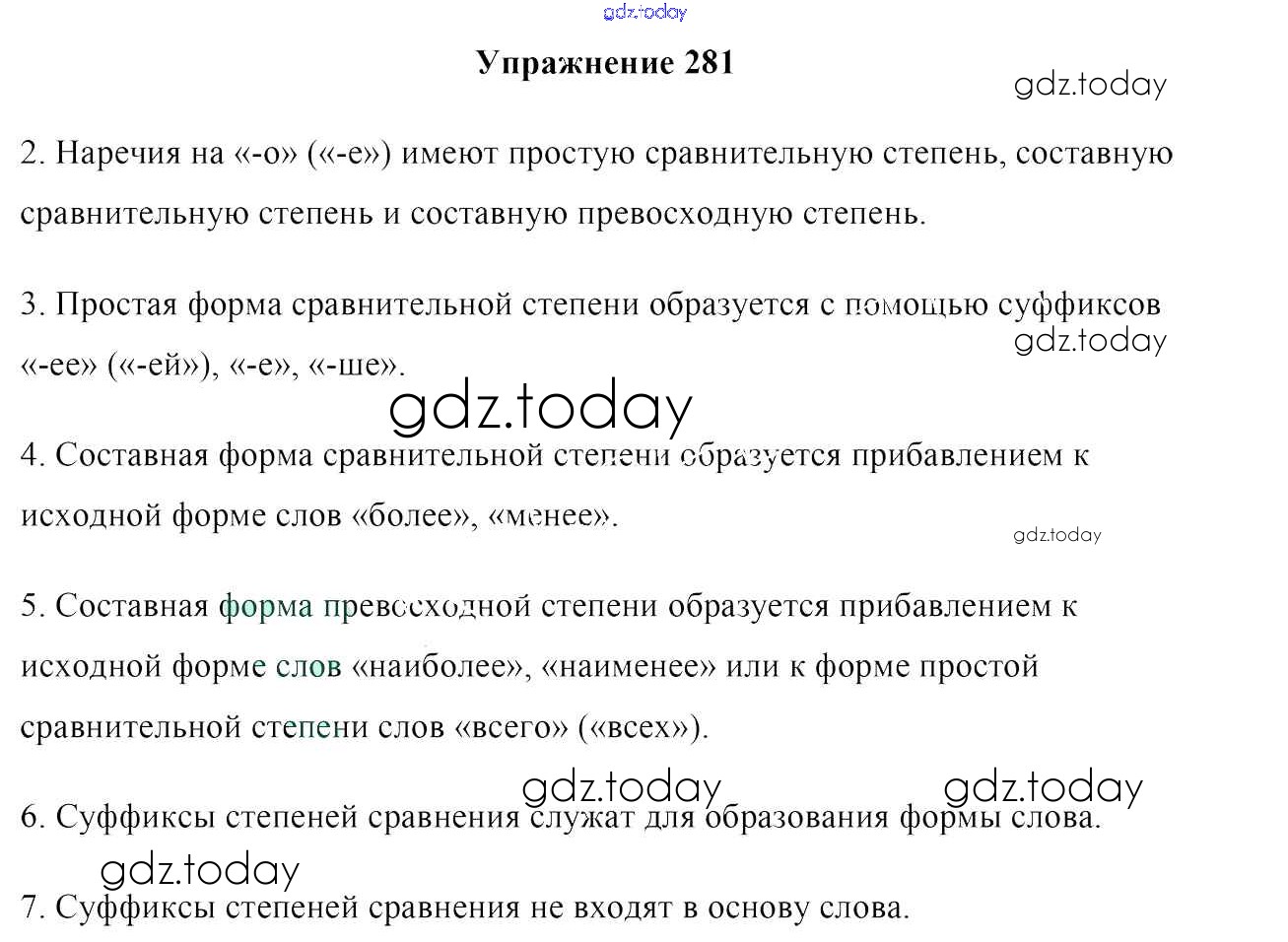 На страницах сайта gdz.today вы найдете учебный и вспомогательный материал, направленный на улучшения знаний школьной программы. ГДЗ - онлайн мир знаний Решение к упражнениям 281 Учебнику по Русскому языку для 7 класса Мурина, Волынец Национальный институт образования 2015