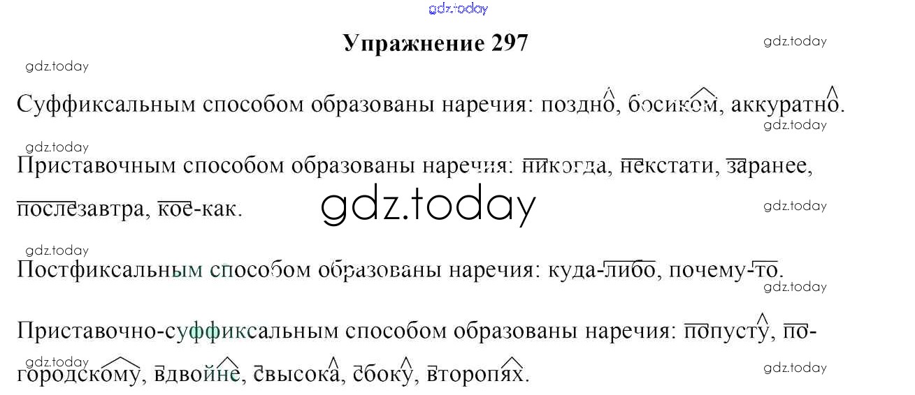 На страницах сайта gdz.today вы найдете учебный и вспомогательный материал, направленный на улучшения знаний школьной программы. ГДЗ - онлайн мир знаний Решение к упражнениям 297 Учебнику по Русскому языку для 7 класса Мурина, Волынец Национальный институт образования 2015