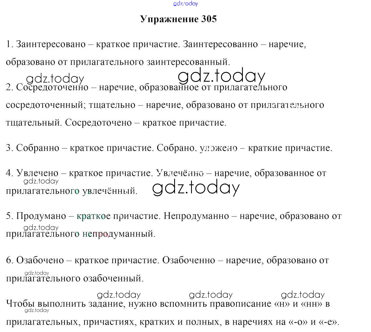 На страницах сайта gdz.today вы найдете учебный и вспомогательный материал, направленный на улучшения знаний школьной программы. ГДЗ - онлайн мир знаний Решение к упражнениям 305 Учебнику по Русскому языку для 7 класса Мурина, Волынец Национальный институт образования 2015