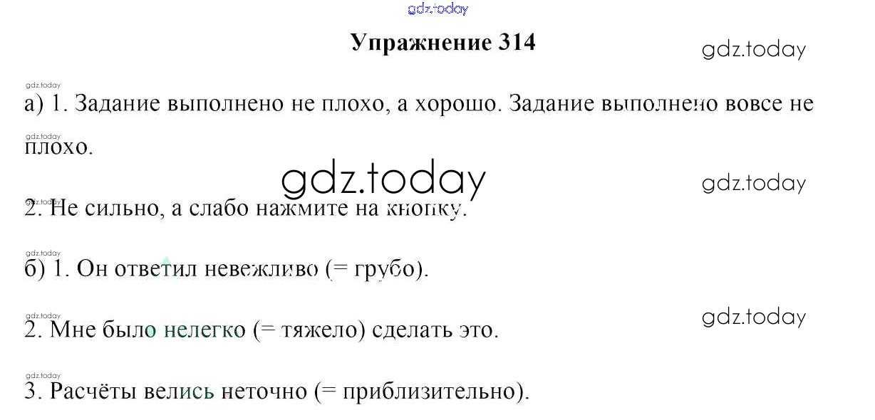 На страницах сайта gdz.today вы найдете учебный и вспомогательный материал, направленный на улучшения знаний школьной программы. ГДЗ - онлайн мир знаний Решение к упражнениям 314 Учебнику по Русскому языку для 7 класса Мурина, Волынец Национальный институт образования 2015