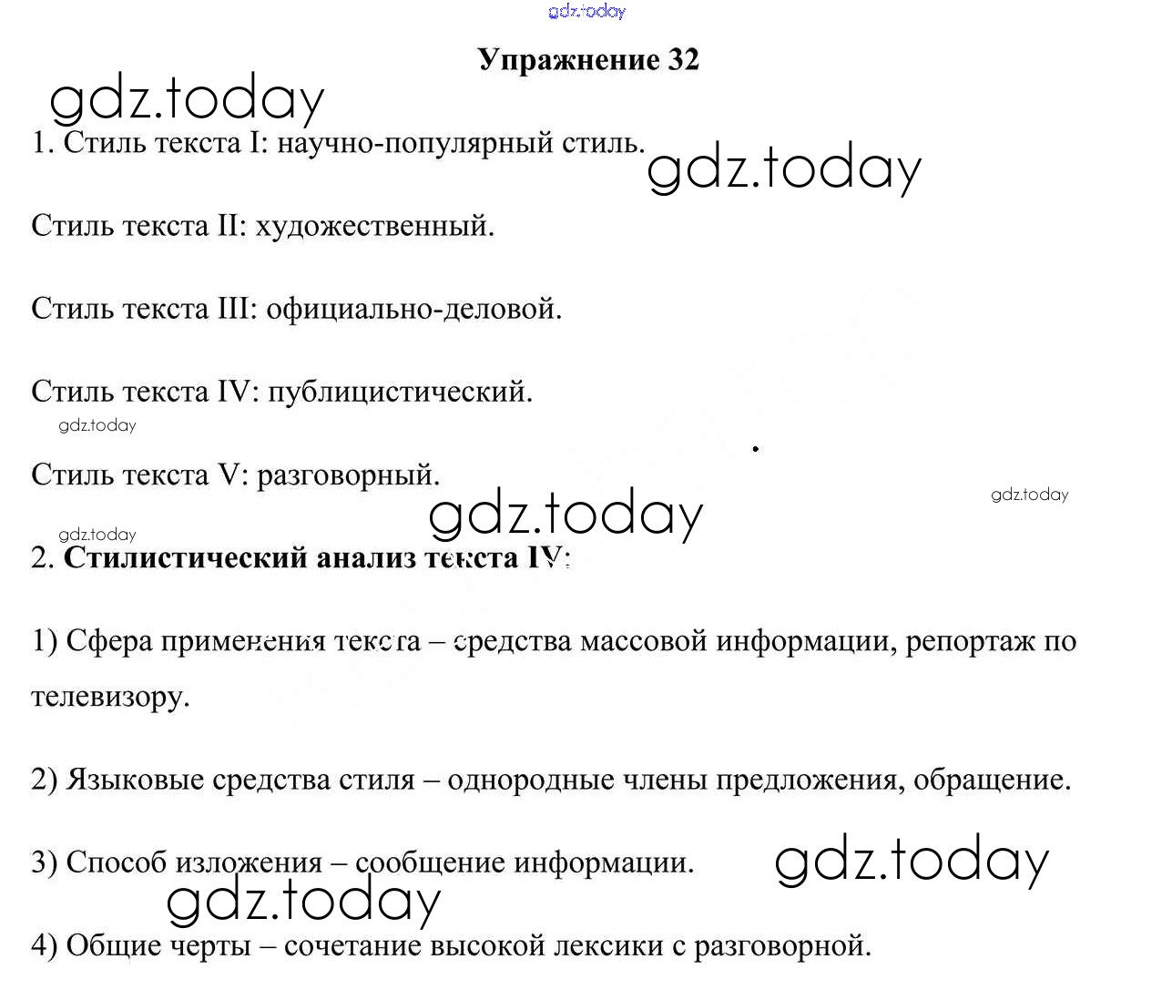 Ответы к Решение к упражнениям 32 Учебнику по Русскому языку для 7 класса Мурина, Волынец Национальный институт образования 2015