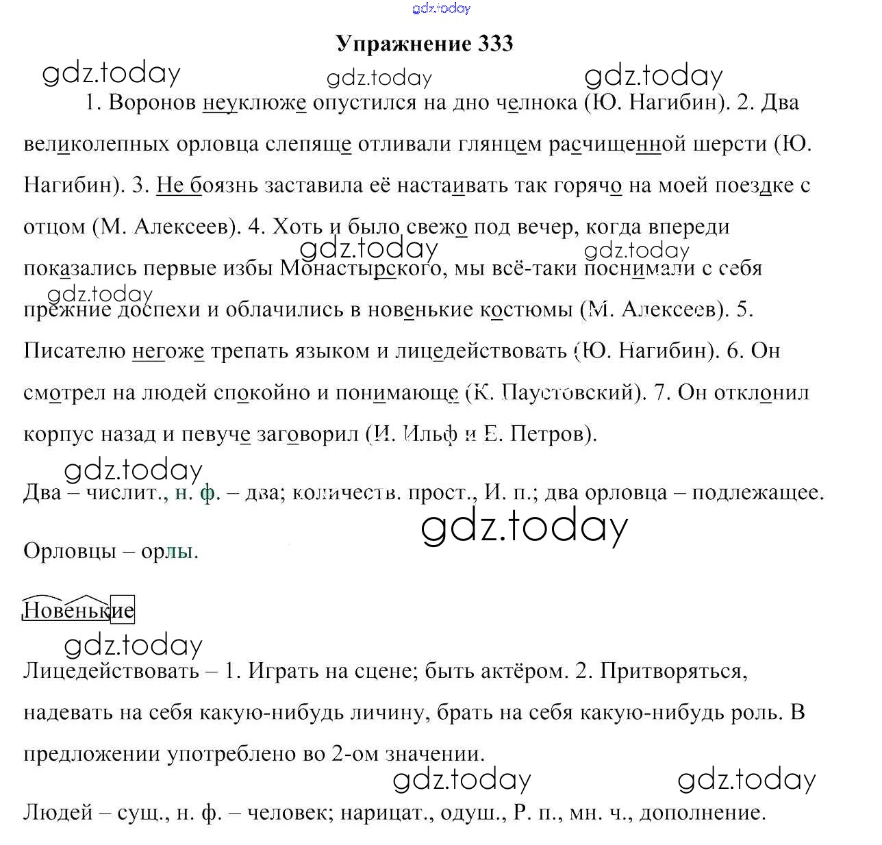 На страницах сайта gdz.today вы найдете учебный и вспомогательный материал, направленный на улучшения знаний школьной программы. ГДЗ - онлайн мир знаний Решение к упражнениям 333 Учебнику по Русскому языку для 7 класса Мурина, Волынец Национальный институт образования 2015