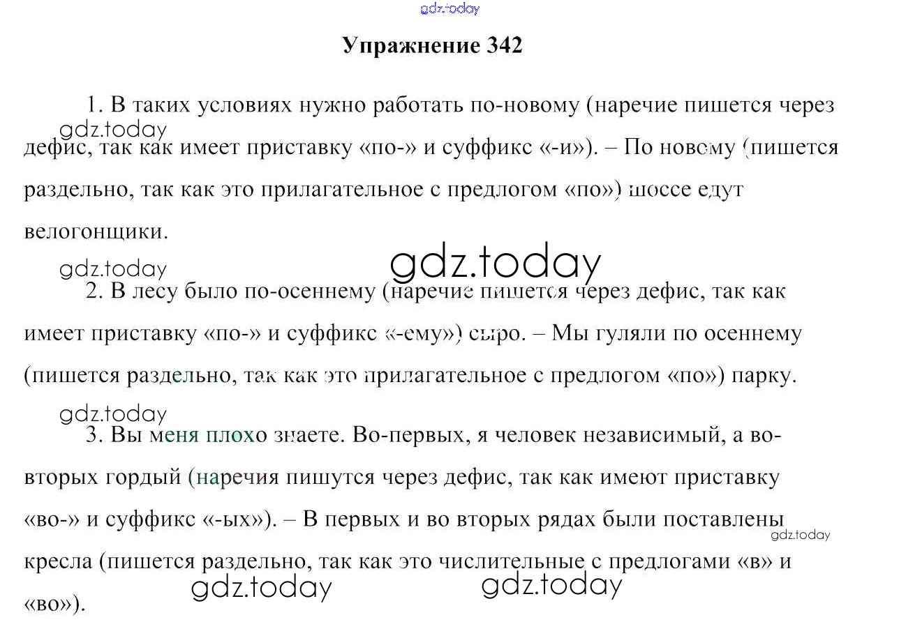 На страницах сайта gdz.today вы найдете учебный и вспомогательный материал, направленный на улучшения знаний школьной программы. ГДЗ - онлайн мир знаний Решение к упражнениям 342 Учебнику по Русскому языку для 7 класса Мурина, Волынец Национальный институт образования 2015