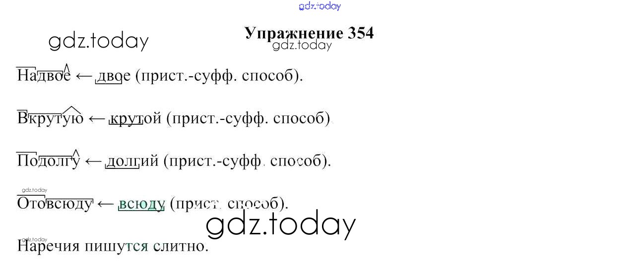 На страницах сайта gdz.today вы найдете учебный и вспомогательный материал, направленный на улучшения знаний школьной программы. ГДЗ - онлайн мир знаний Решение к упражнениям 354 Учебнику по Русскому языку для 7 класса Мурина, Волынец Национальный институт образования 2015