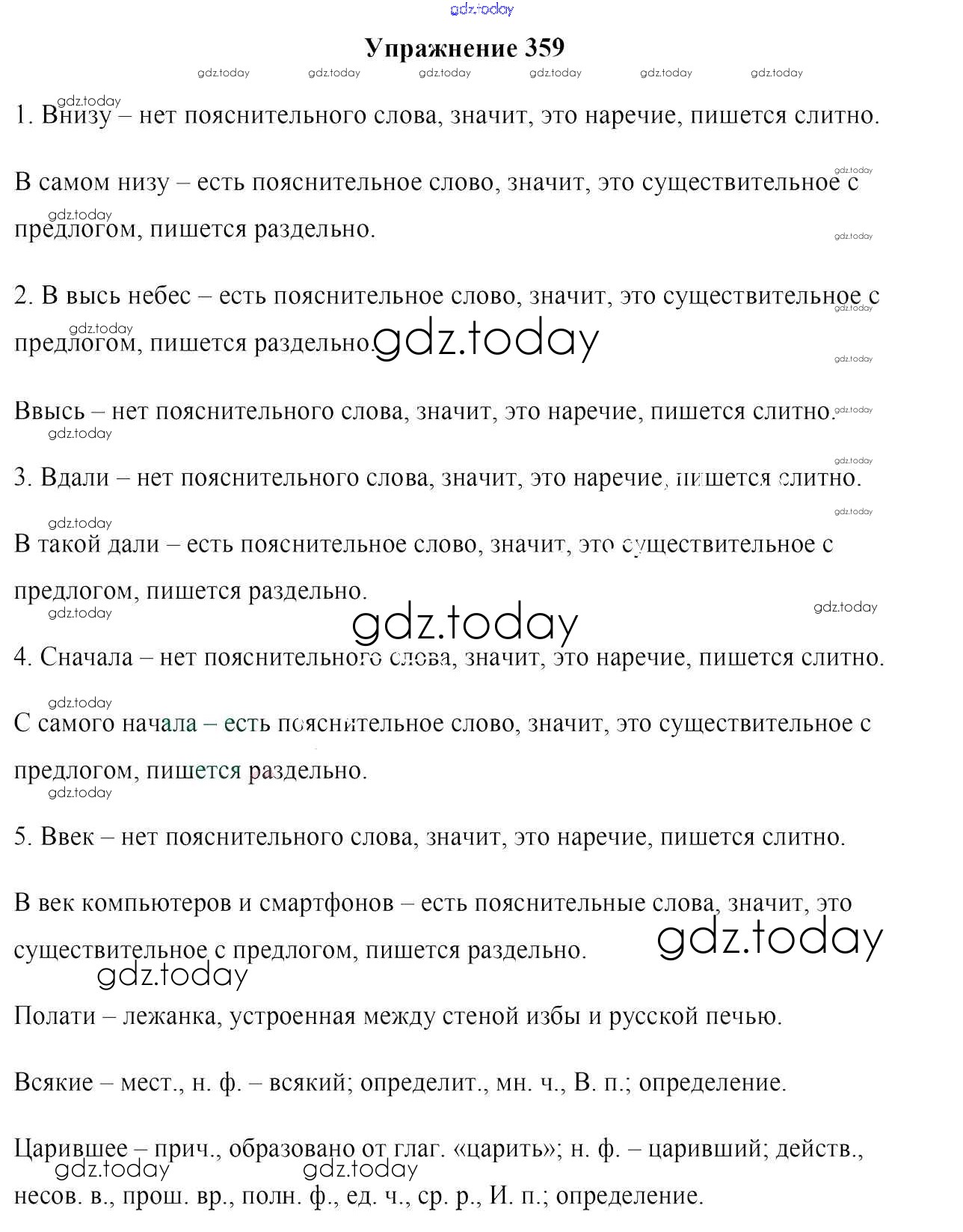На страницах сайта gdz.today вы найдете учебный и вспомогательный материал, направленный на улучшения знаний школьной программы. ГДЗ - онлайн мир знаний Решение к упражнениям 359 Учебнику по Русскому языку для 7 класса Мурина, Волынец Национальный институт образования 2015