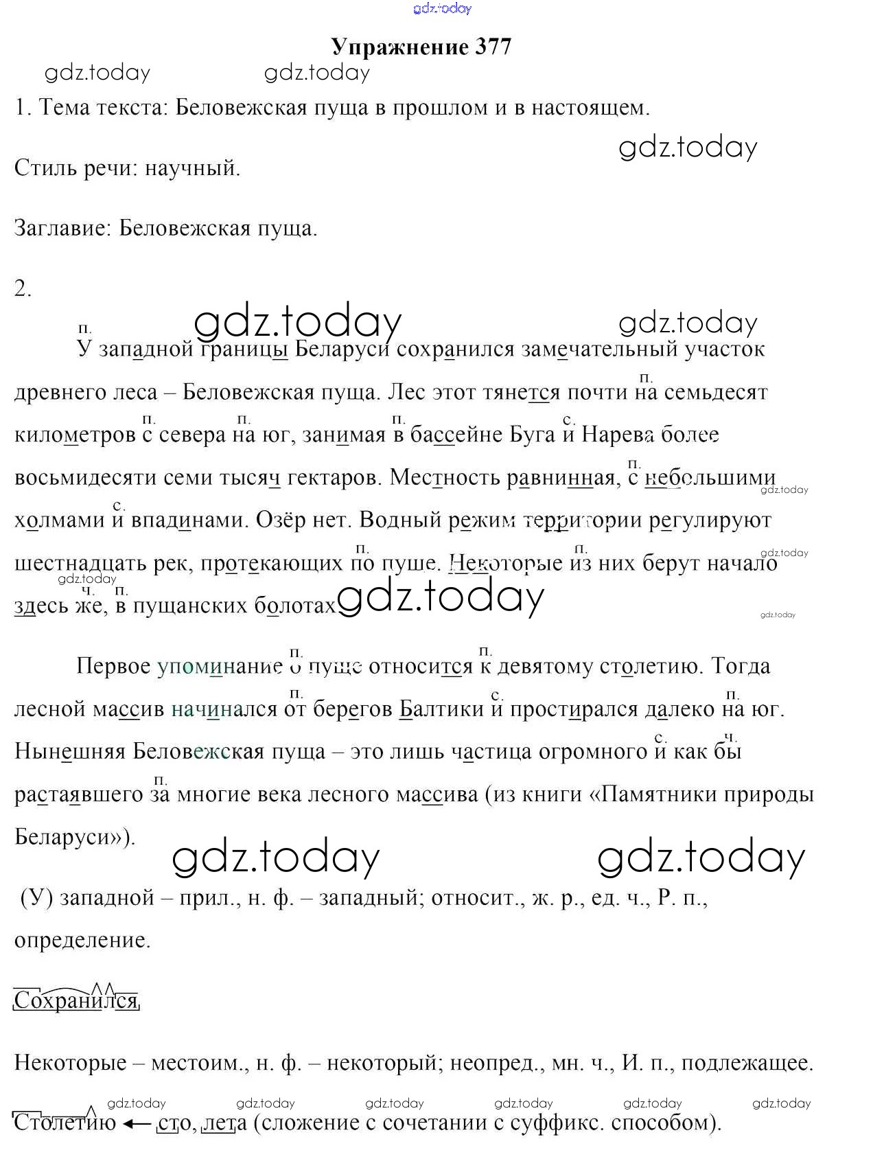На страницах сайта gdz.today вы найдете учебный и вспомогательный материал, направленный на улучшения знаний школьной программы. ГДЗ - онлайн мир знаний Решение к упражнениям 377 Учебнику по Русскому языку для 7 класса Мурина, Волынец Национальный институт образования 2015