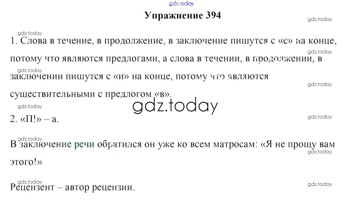 На страницах сайта gdz.today вы найдете учебный и вспомогательный материал, направленный на улучшения знаний школьной программы. ГДЗ - онлайн мир знаний Решение к упражнениям 394 Учебнику по Русскому языку для 7 класса Мурина, Волынец Национальный институт образования 2015