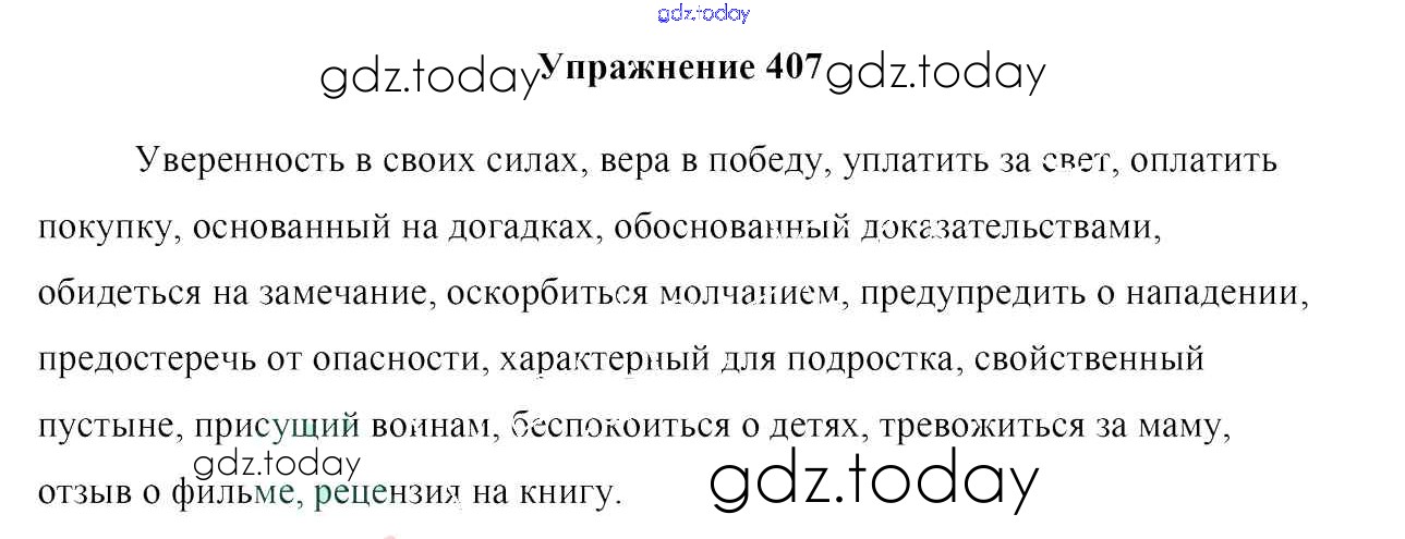 На страницах сайта gdz.today вы найдете учебный и вспомогательный материал, направленный на улучшения знаний школьной программы. ГДЗ - онлайн мир знаний Решение к упражнениям 407 Учебнику по Русскому языку для 7 класса Мурина, Волынец Национальный институт образования 2015