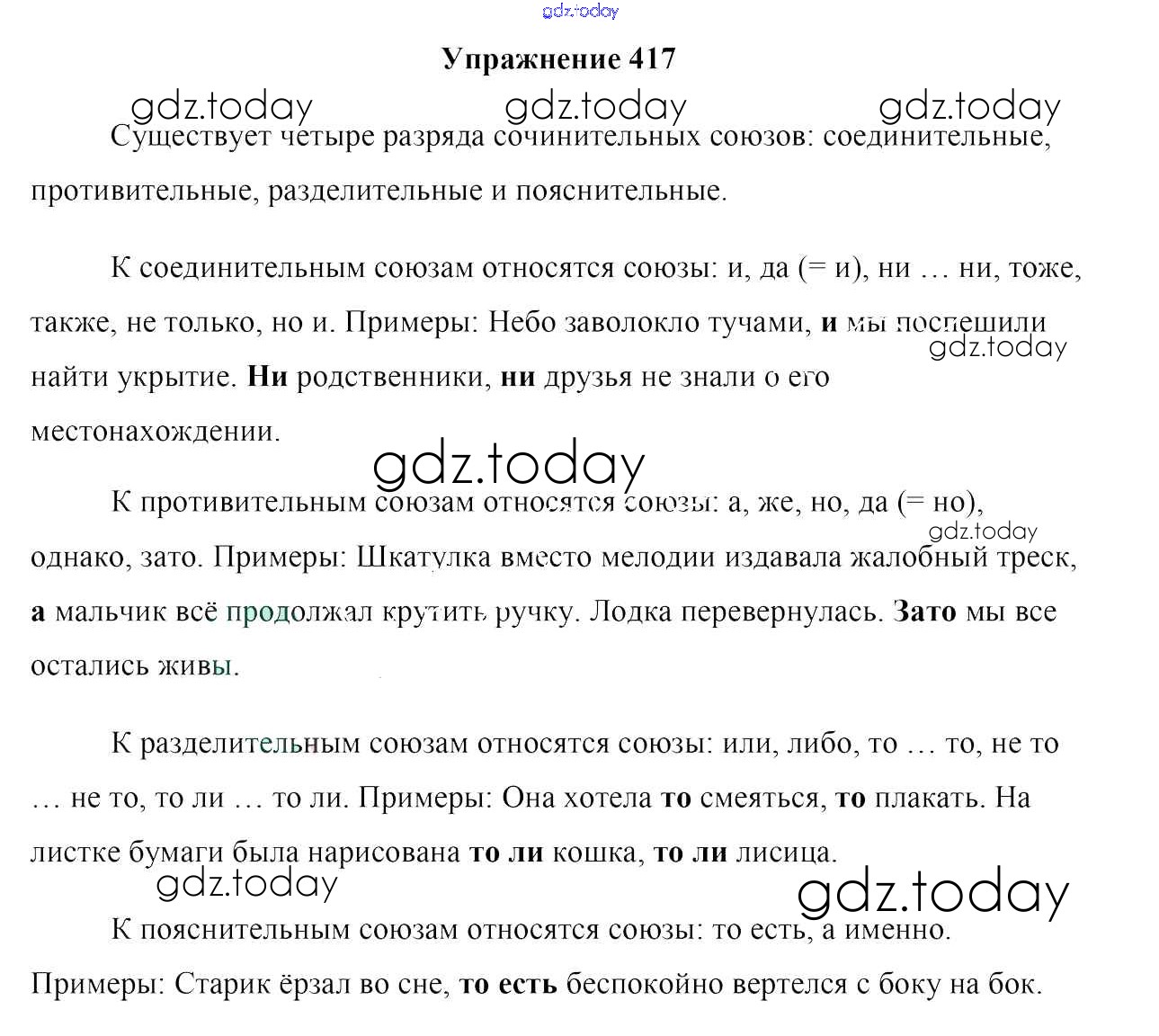 На страницах сайта gdz.today вы найдете учебный и вспомогательный материал, направленный на улучшения знаний школьной программы. ГДЗ - онлайн мир знаний Решение к упражнениям 417 Учебнику по Русскому языку для 7 класса Мурина, Волынец Национальный институт образования 2015