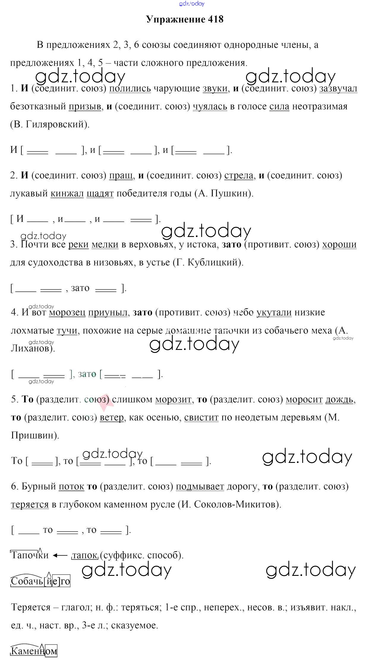 На страницах сайта gdz.today вы найдете учебный и вспомогательный материал, направленный на улучшения знаний школьной программы. ГДЗ - онлайн мир знаний Решение к упражнениям 418 Учебнику по Русскому языку для 7 класса Мурина, Волынец Национальный институт образования 2015